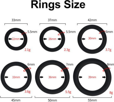 Lusties Cockring Set – 6-delige Siliconen Erectiering Set – Verschillende Maten – Zwart & Rood