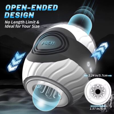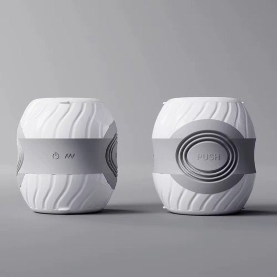Lusties Premium Elektrische Stroker – Open-Ended Masturbator – Met Unieke Push-Control – 10 Vibratiestanden – Wit/Grijs